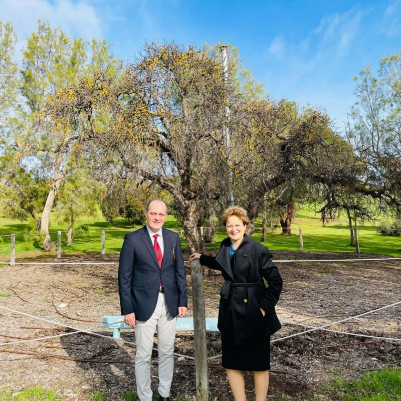 On arrival they met with Mr Michael Pengilly, Mayor, and Mr Greg Georgopoulos, Chief Executive Officer, Kangaroo Island, visited the Old Mulberry Tree, Pioneer Cemetery and historic precinct at Reeves Point.